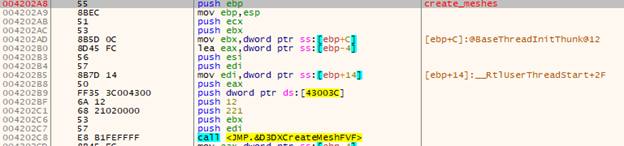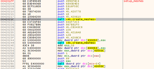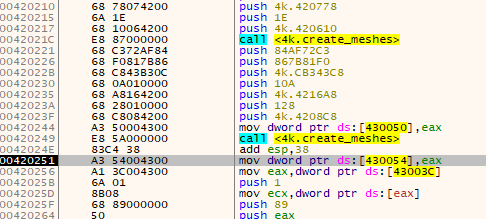 Rõ ràng ở đây t thấy tận 2 hàm create_meshes, vậy nên 1 hàm là create flare-on logo, 1 còn lại là gì đó(khả năng là flag).