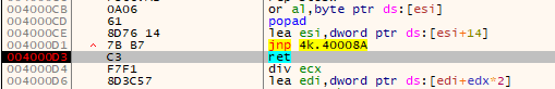 Chúng ta thấy một entrypoint ở đây, nhưng hầu như ko có ich gì cả. Ta sẽ tìm lệnh ret đầu tiên để lấy vị trí entry thật.
